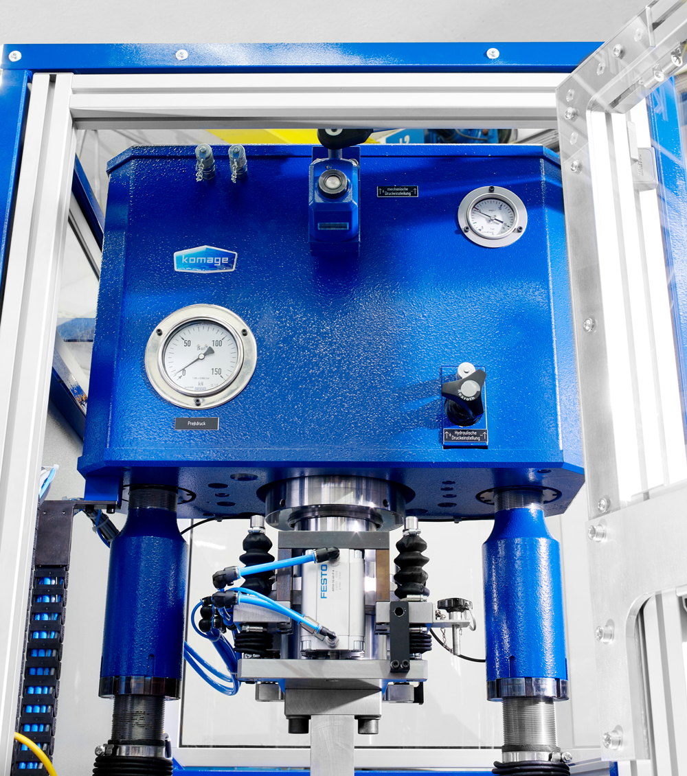 The K Series from KOMAGE is particularly efficient for this – and is also well-known as a competitively priced powder press system. With a pressing force of 50 - 500 kN, the powder presses of the K Series are extremely flexible and perfectly equipped for the requirements of continuous use. All powder presses of the K Series operate based on the withdrawal principle.